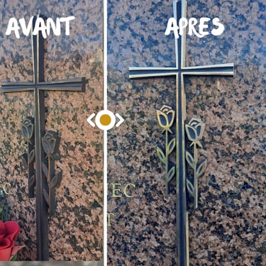 Remise en éclat plaques funéraires ( bronze, résine, marbre)